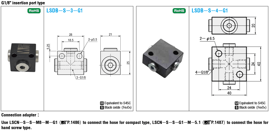 Manifold with G1/8 insertion port and parts for gas spring piping.