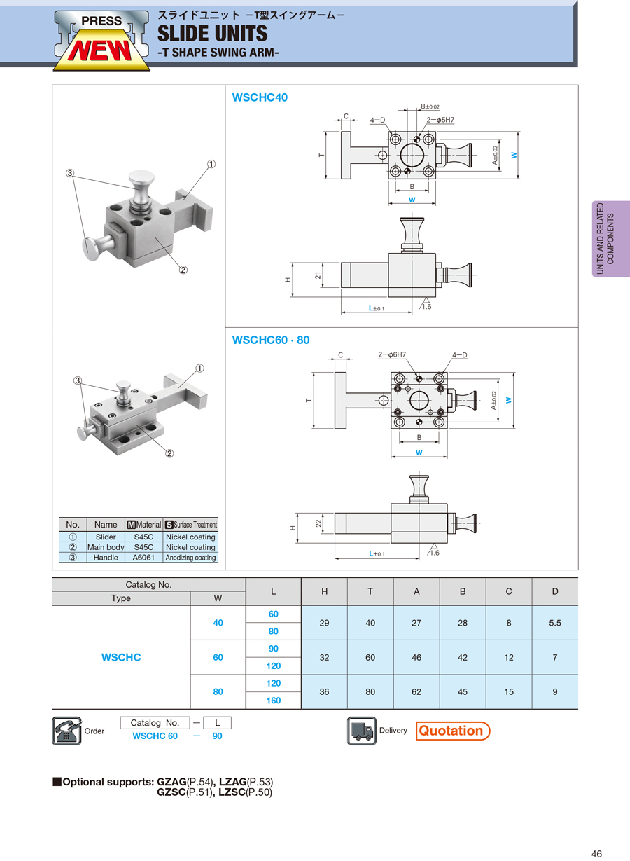 SLIDE UNITS -T SHAPE SWING ARM