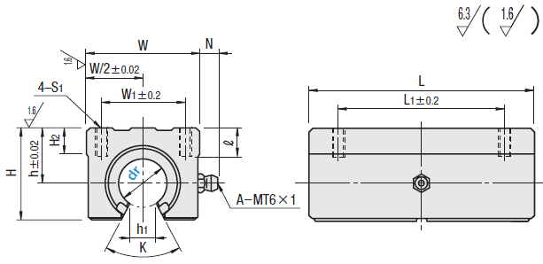 | Part Number | h | W | H | L | L1 | H2 | N | W1 | S1 | ℓ | h1 | K | Basic Load Rating | Mass (g) | ||