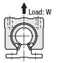 The load rating capacity for Open Wide Block Type decreases when load is applied from the open side (diagram to the right), such as being used with a vertical shaft or subjected to overhang load.In such a case, please use it after correcting the load rating using with the correction factors shown in the table below.