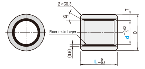 Compared to Multi-Layer LF Bushings - Straight (MDZB), more precise linear and rotary motion can be achieved by keeping the clearance between bushings and g6 shafts small.