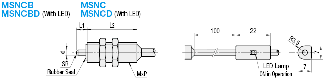 | SUS303 | SUS303 | Cable 1m, 3-Conductors Ø2.8, Oil Resistant Min. Bending Radius R7 | Hexagon Nuts 2 pcs. (M6 Thickness 2, Wrench Size 7M8 Thickness 2.5, Wrench Size 10) |