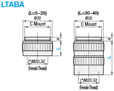 The combination of LTAB and LTABA can be used as the C Mount FA lens. (Refer to P.1708-1710)