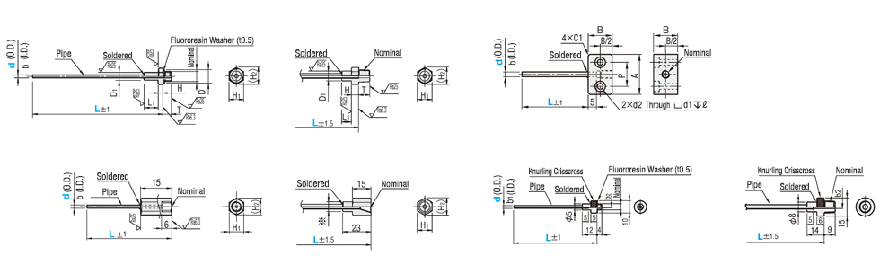 | Male Threaded | Tapped | Terminal Block | Knurling Crisscross | [M] Material | [H] Hardness | |||