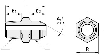 [Features]·An adapter fitting for hydraulic hoses. ·The fluids used are oil and water. ·The maximum operating pressure is 20.6 MPa (210 kgf/cm2 or less).