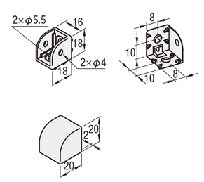 | Corner Brackets Features | This product allows for 2-way and 3-way connections with just one Corner Brackets. Additional end tapping is required on the frame. | This Corner Brackets can be fitted to the end of a frame. It also functions as a frame cap. |
