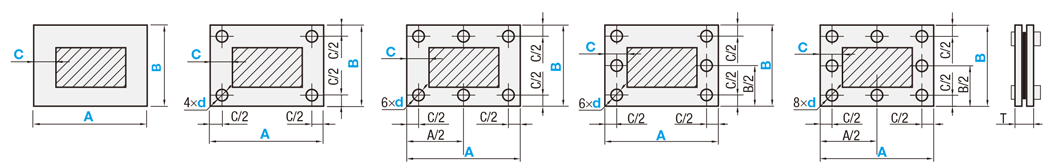 [ ! ] NETSJ and NETSUS□ are sandwiched between two SUS304 frames, 1.5 mm each in thickness, then riveted in appropriate positions at approx. 100 mm pitch.