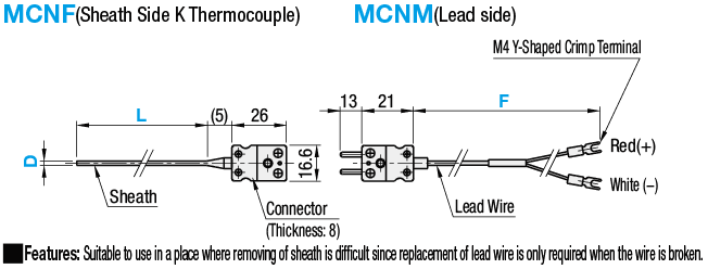 It is used in a place where removing of sheath is difficult since replacement of lead wire is only required when the wire is broken.