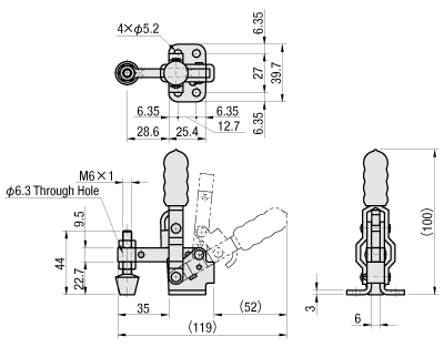 Toggle Clamp, Vertical Type, Flange Base, No Clamp Bolt, Clamping Force 882 N