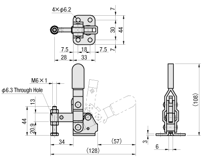 Toggle Clamp, Vertical Type, Flange Base, Clamp Bolt Fixed, Clamping Force 980 N