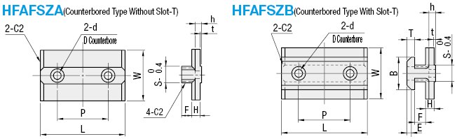 | Door Sliders Model | Compatible Frames (Series) | H | F | S | T | E | B | L | P | W | D | d | h | t | Applicable bolts and nuts | ||