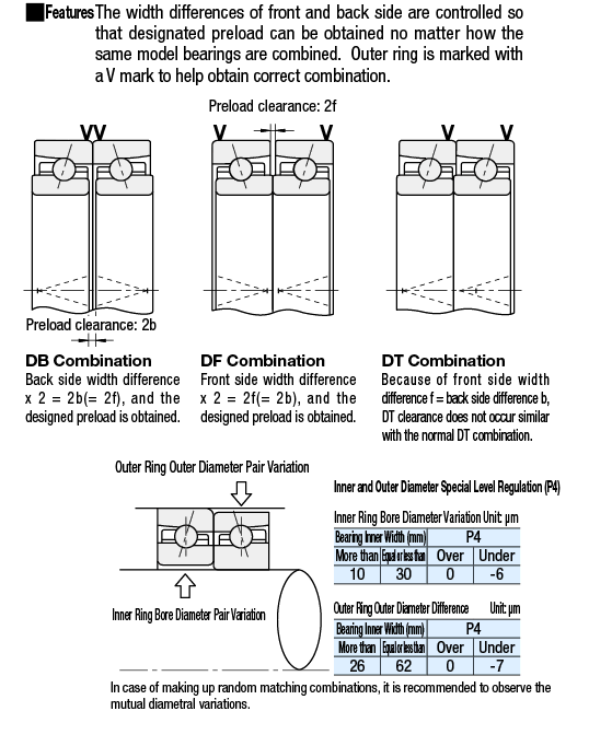 [ ! ]When using multi-row combination, it is recommended to match inner and outer diameter variations of each row.