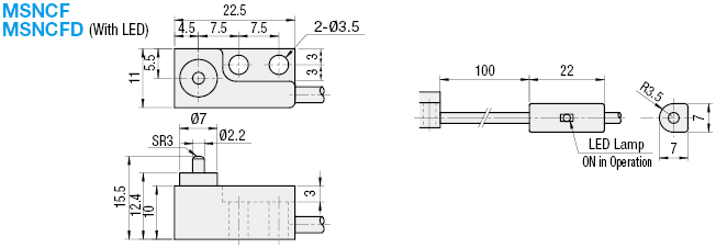| SUS303 | Zinc Alloy | Cable 1m, 3-Conductors Ø2.8, Oil Resistant Min. Bending Radius R7 |