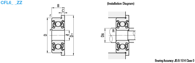 | Part Number | d | D | B | D1 | C | r (min) | Basic Load Rating | Allowable Rotational Speed rpm (Ref.) | Relative Dimensions | Mass (g) (Ref.) | Unit Price | ||