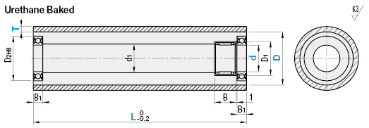 [ ! ]O.D. of Urethane bonded product is D+2T. (Different from other rollers)