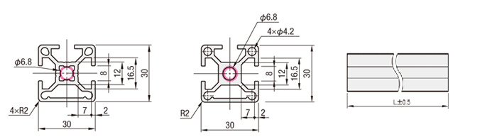| type | Material | Surface Treatment | Model | L specified in 0.5mm increments (tolerance ±0.5mm) | Mass kg/m | Cross-sectional area mm 2 | Moment of inertia mm 4 | |