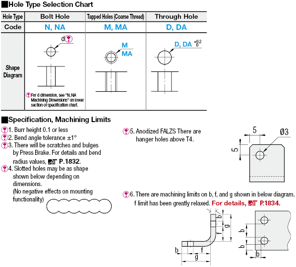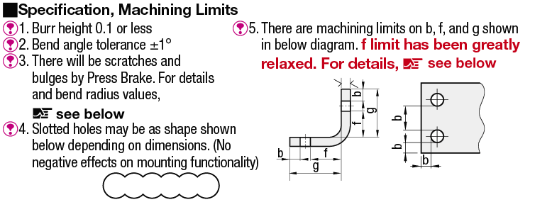 [ ! ]5. There are machining limits on b, f, and g shownin below diagram. f limit has been greatlyrelaxed. For details, >> Click here