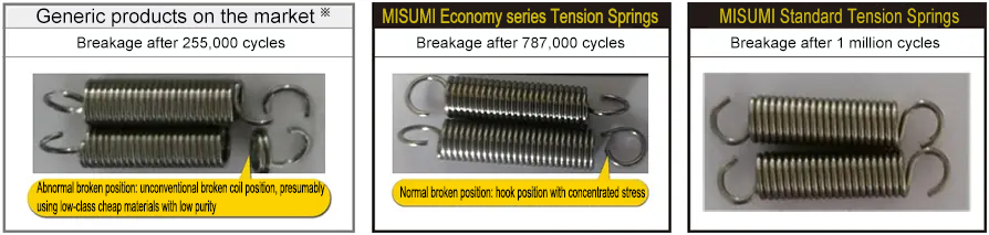 *The above number of times is for reference only. The number of times of use varies with the tensile direction, operating temperature/environment, and amount of deformation. To increase the usage count, it is recommended to use the spring up to 70% of the allowable displacement Fmax..