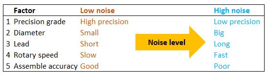 Ball screw noise level is affected by several important factors:The figures below show the noise levels of ball screws with different specifications.
