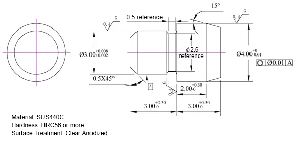 | Equivalent to SUS440C | Electroless Nickel Plating | 18~43 | 98~117.6 | Within 20 | ±Within 5.0 |