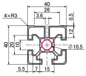 ● Cross-section : 40 mm. x 40 mm.