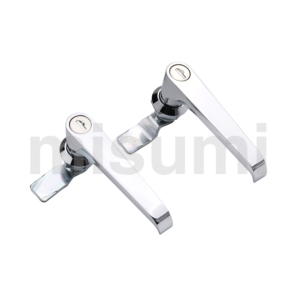 MISUMI Economy series Flat Type Handle Locks come with a L-shaped handle grip, allowing for easier door opening and closing than other types of lock.