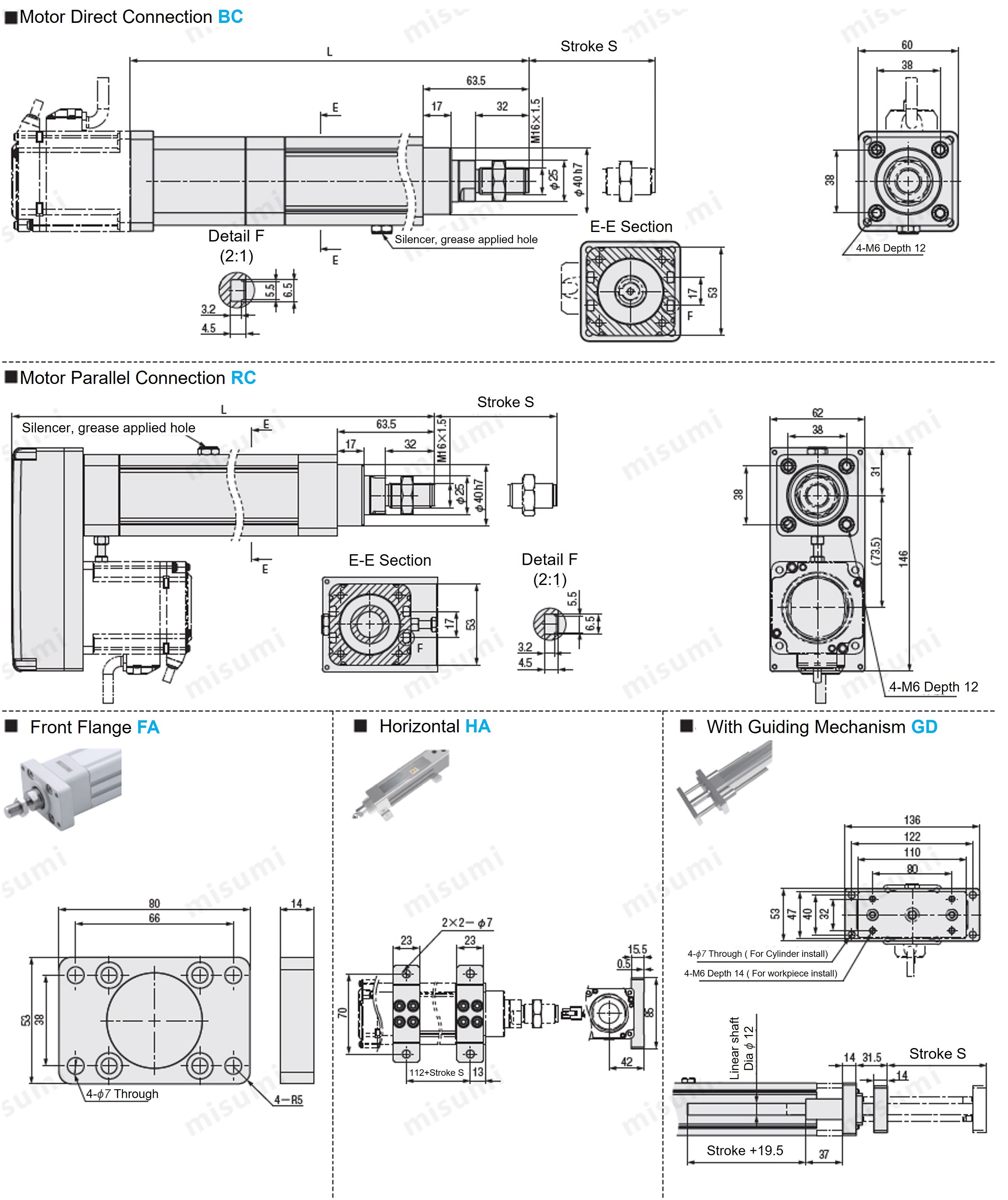 When choose GD (Guide mechanism), the total length L is L-18Specification Table