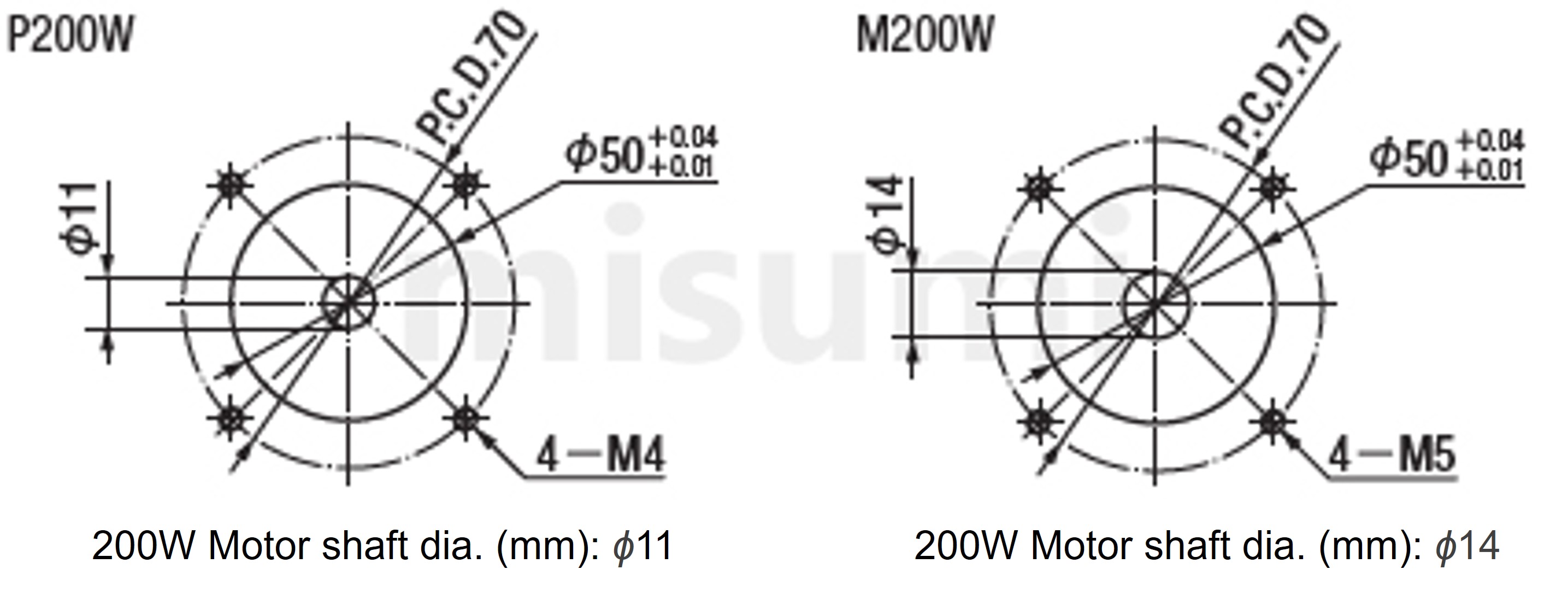 | 200W | E-ECTL50/E-ECRL8 | 3GT | 15 | 81 | 2.5 | 32~42 |