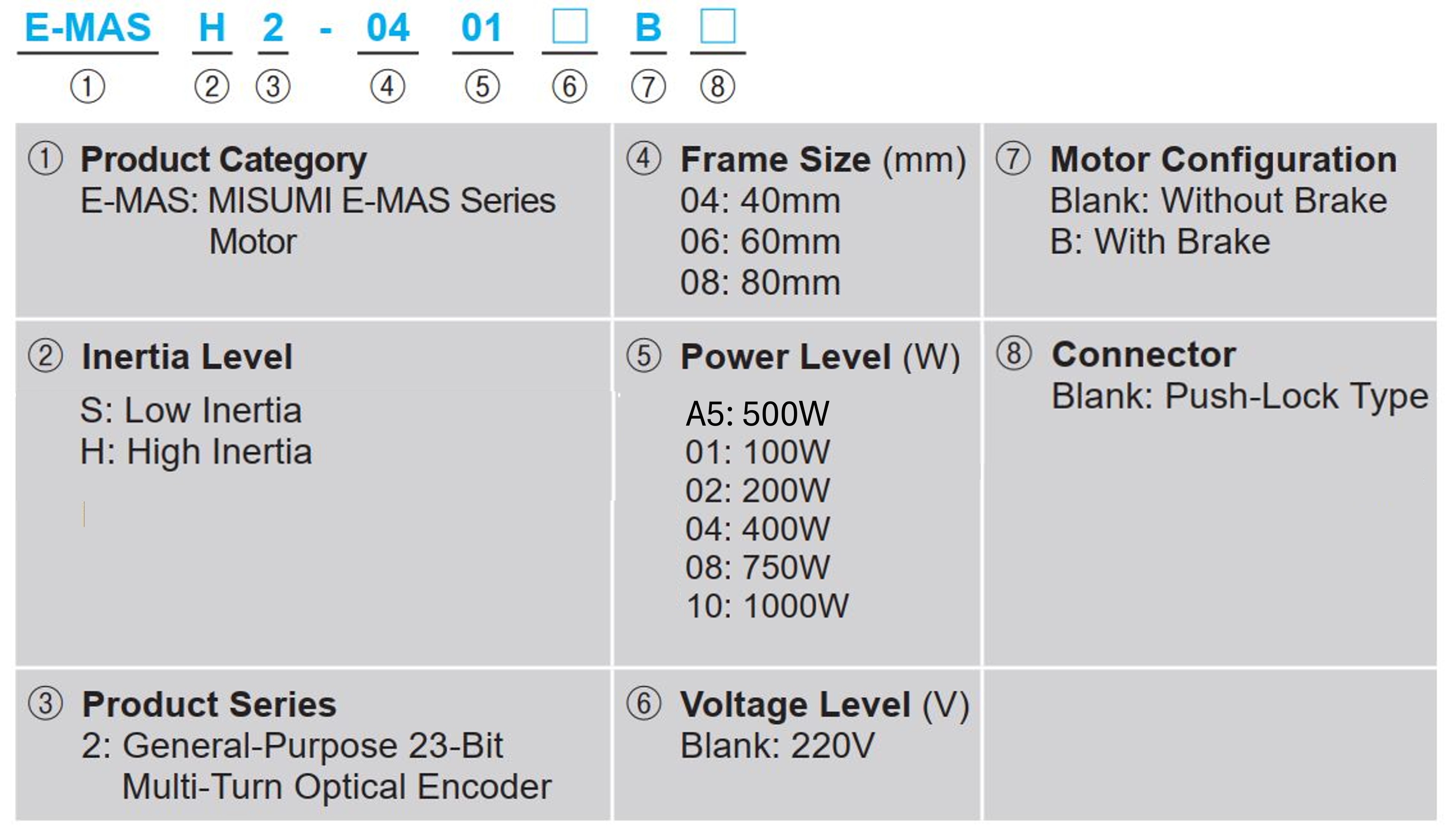MISUMI AC Servo Motor which is applicable to E-DHAS Series Full-Function Drivers and E-DFAS Servo Drivers.