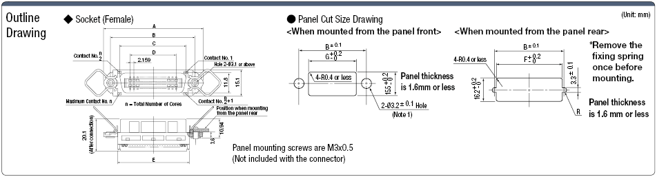 (Note 2) Without strain relief, the dimensions processed for "with strain relief" can also be used.