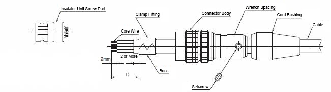 (1) Pass the cable through the cord bushing and connector body, and then solder to the insulator unit contact.