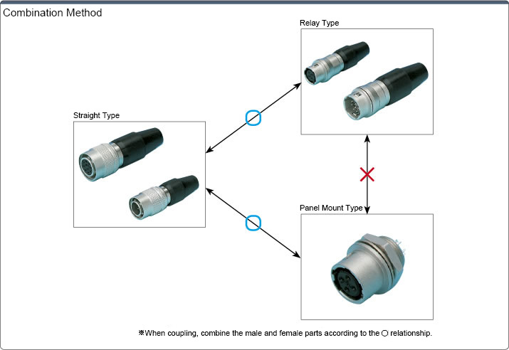 CN1 - Male straight, Male panel mount, Female straight and Female panel mount