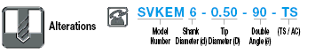 | Model Number | Tip Diameter D 0.01 mm Increment Designation | Double Angle θ 1° Increment Designation | Blade Length ℓ | Overall Length L | ||||