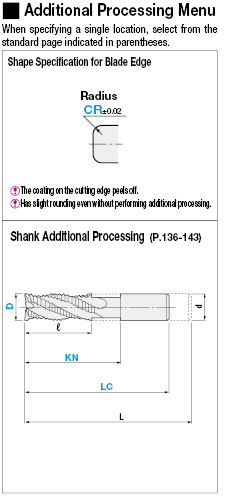 | Flute Diameter D (Selection) | -CR 0.1 mm Increment Designation |