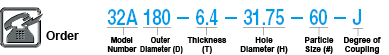 | Outer Diameter D | Thickness T | Hole Diameter H | Particle Size (#) (selection) | Stocked Item / Non-Stocked Item | ||||