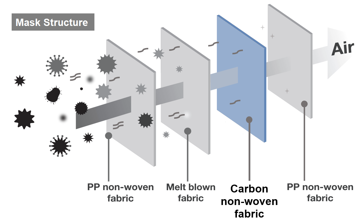 - Carbon non-woven fabric increase protection against odors and vapors from chemicals which may be a carcinogen.