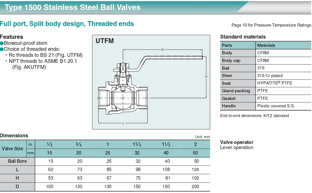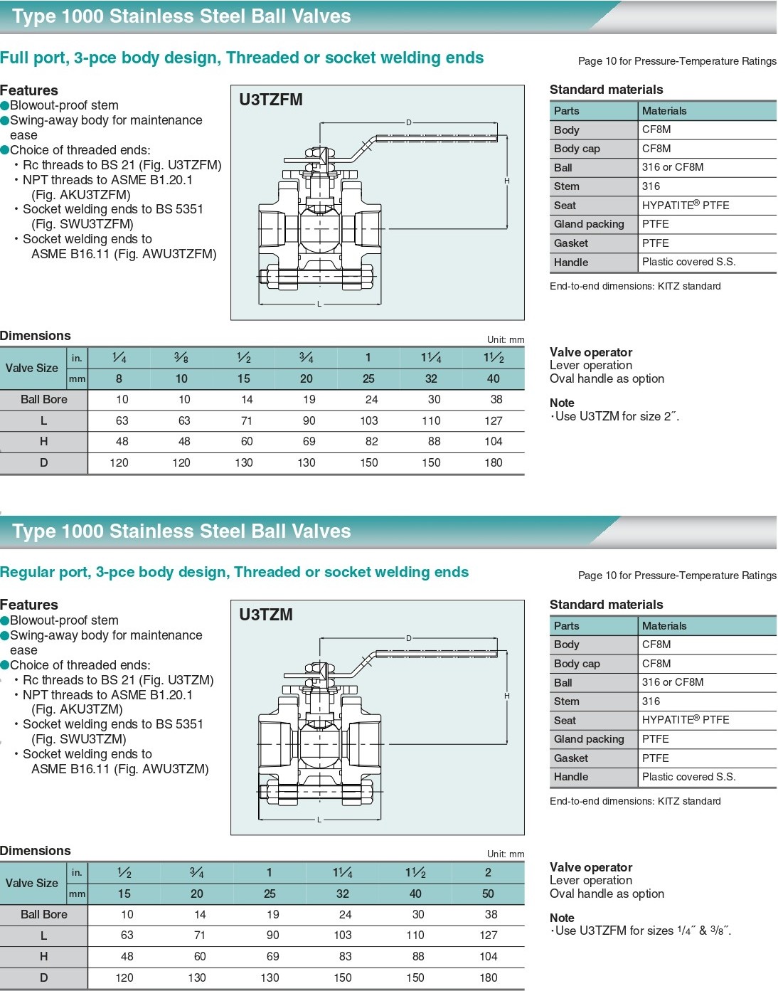 UTFM/U3TZFM/U3TZM/UTHL, Type 1000 Cast Stainless Steel Ball Valve
