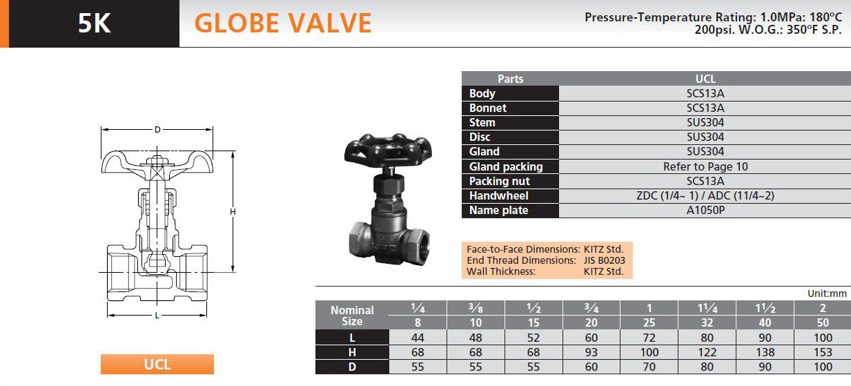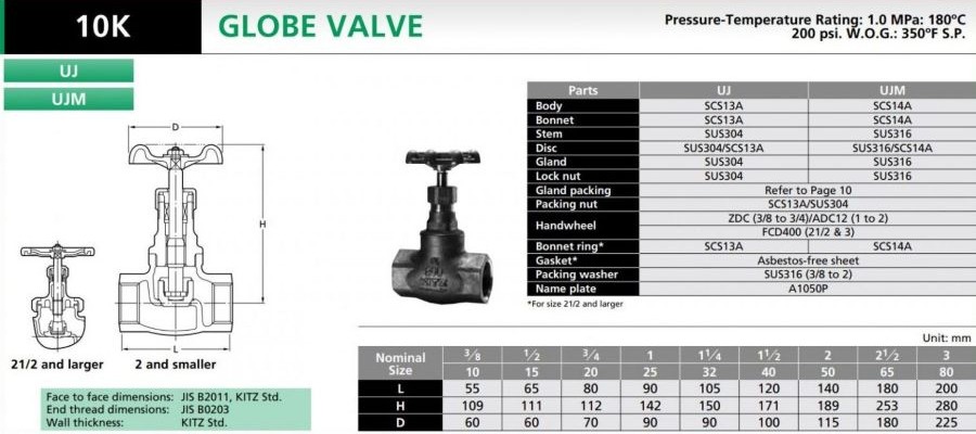 UCL/UD/UJ/UJM, 10K Cast Stainless Steel Globe Valve