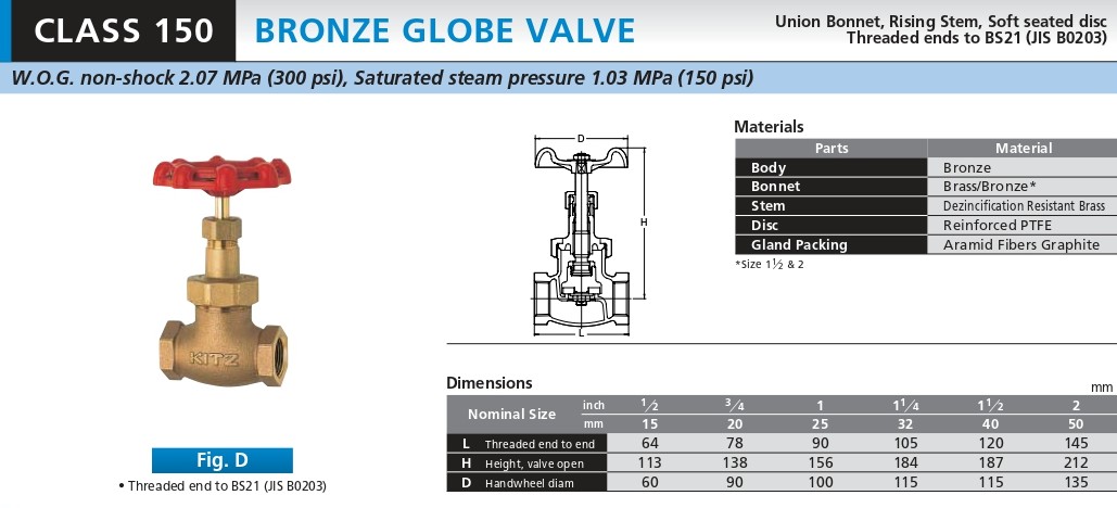C/CA/D, Class 150 Cast Bronze Globe Valve