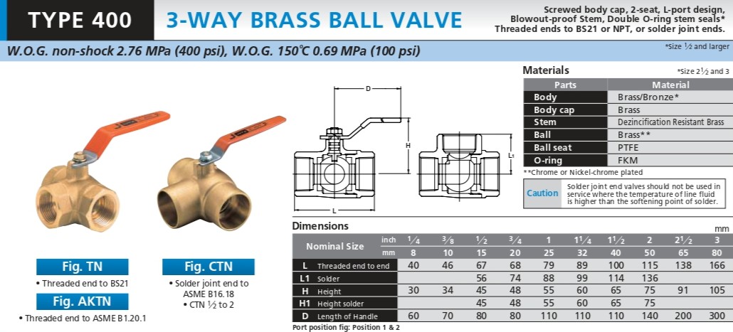 TN, Type 400 Forged Brass General-Purpose Ball Valve