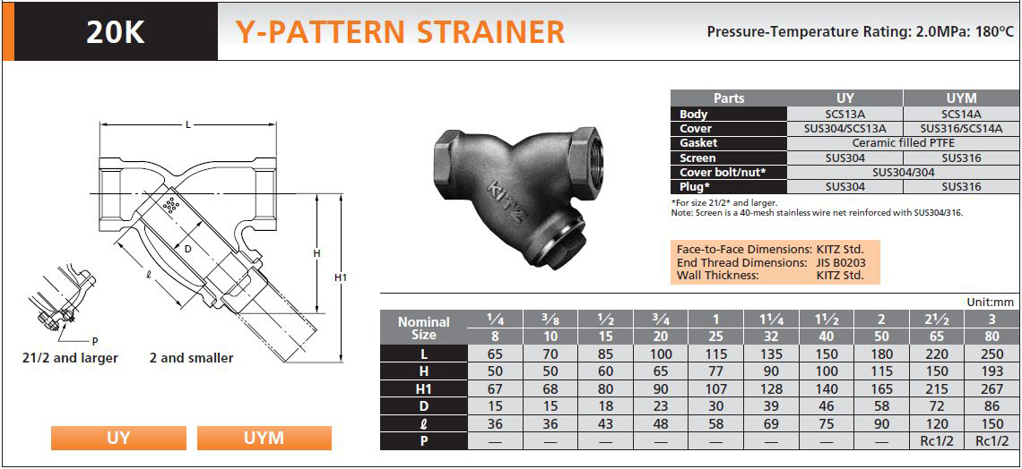 UY/UYM, 20K Stainless Steel Y-Shaped Screw-In Strainer