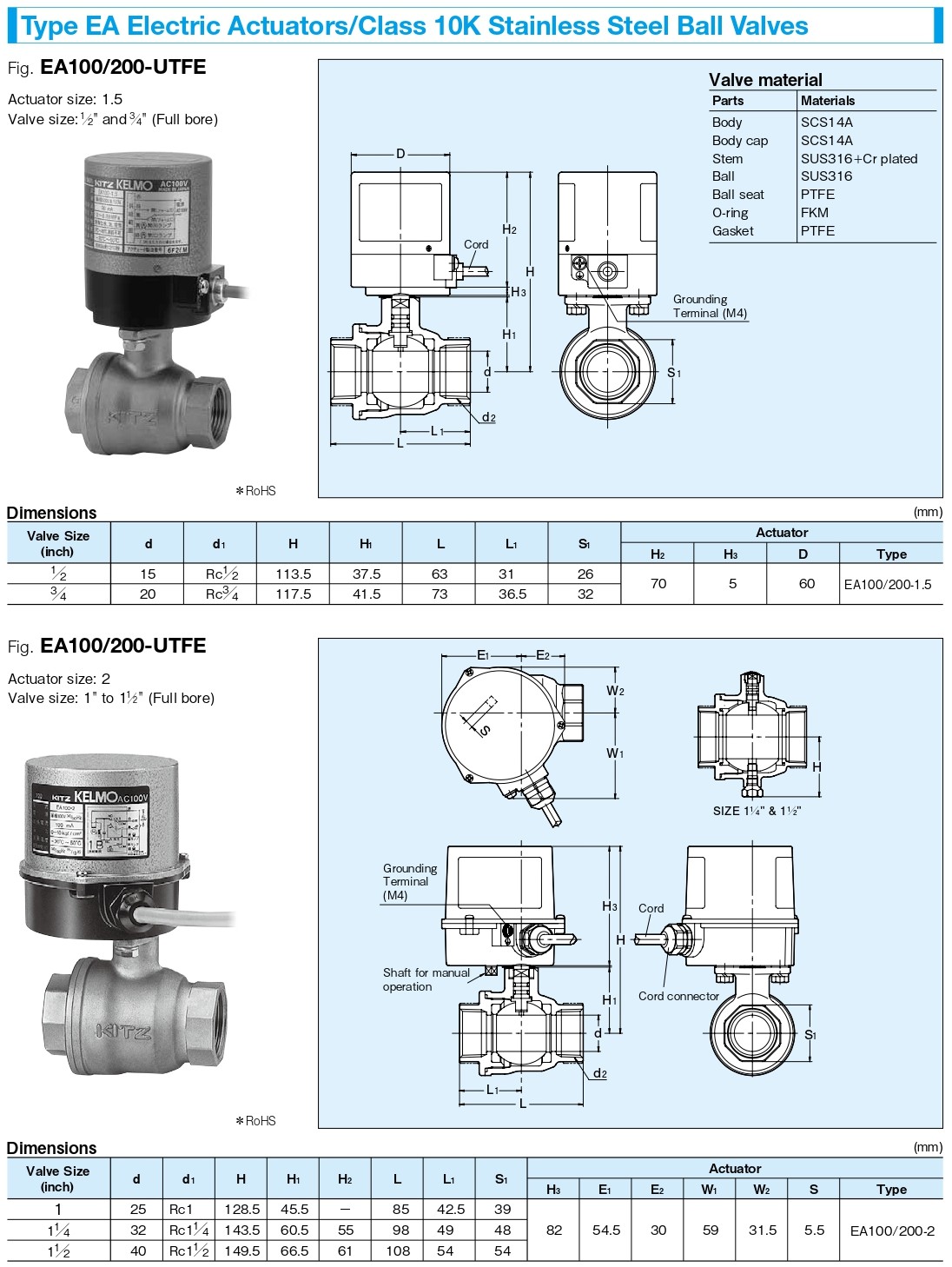 EA, 10K Cast Stainless Steel Ball Valve With KITZ-Electric Actuator