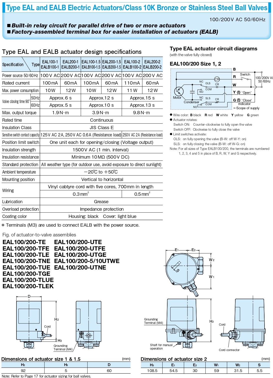 EA type (100 V AC) ON/OFF control, 90° forward/reverse rotation