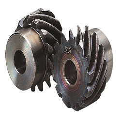 Helical gear with induction hardening performed on teeth part. As helix angle is 45°, can be used for both helical gear (parallel axis) and screw gear (cross axis).