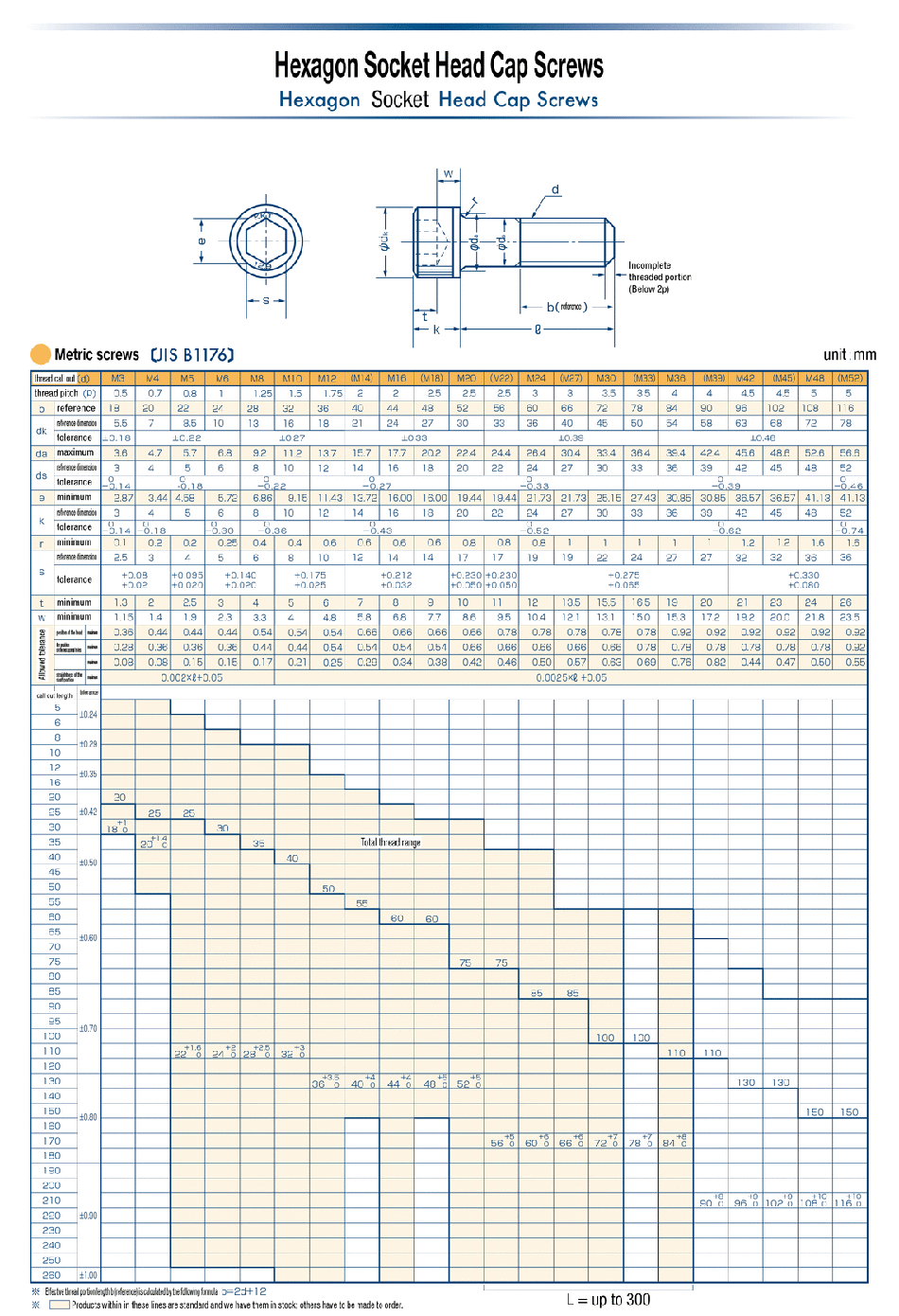 [Nominal Thread (M)] 2.5 3 4 5 6 8 10 12 14 16 18 20 22 24 27 30 36