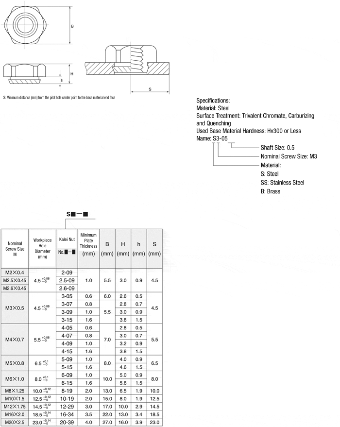 Mount the nut using press fitting to thin or unsuitable for welding base materials.