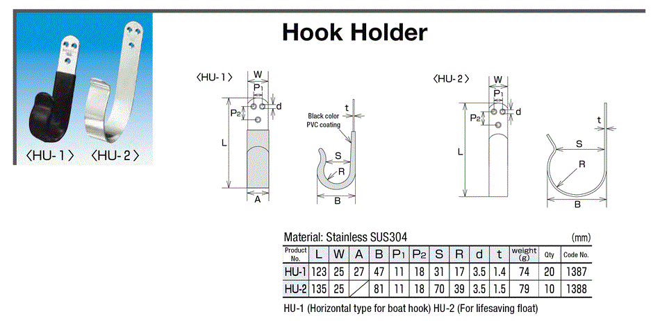· HU-1 (Horizontal type for boat hooks)HU-2(For lifesaving rings)