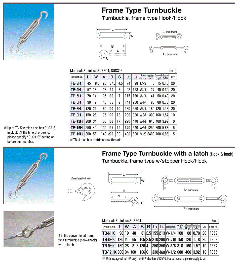 Frame-Turn Buckle, Includes Latch (Hook & Hook)