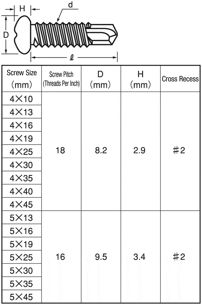 Self-drilling screws for use in metal buildings. More orthodox fastening head shape with attractive appearance.