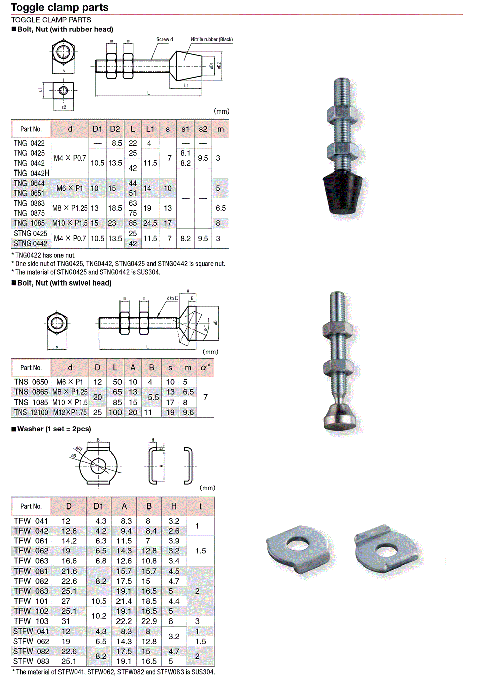 Bolts and Nuts for Toggle Clamps with Rubber Head